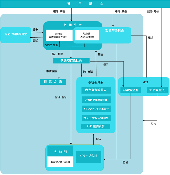 これらの機関のほか、経営における意思決定・監督機能と執行機能を分離し、迅速かつ効率的な経営を推進するため、執行役員制度を採用しております。